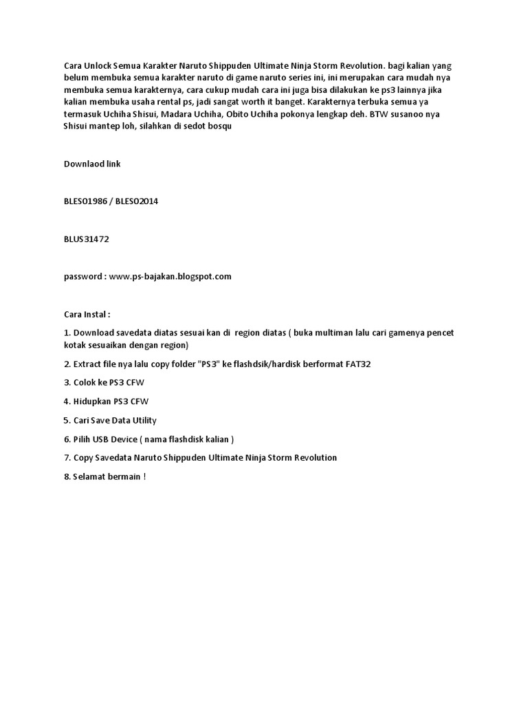 Naruto shippuden ultimate ninja storm revolution cheats. Ultimate ninja storm revolution achievement list. When you complete a certain task or earn the indicated amount of ryo the corresponding character will become unlocked in free play mode. Sasuke game ending s rank duration. Ultimate ninja storm revolution on the playstation 3 gamefaqs has 115 cheat codes and secrets.